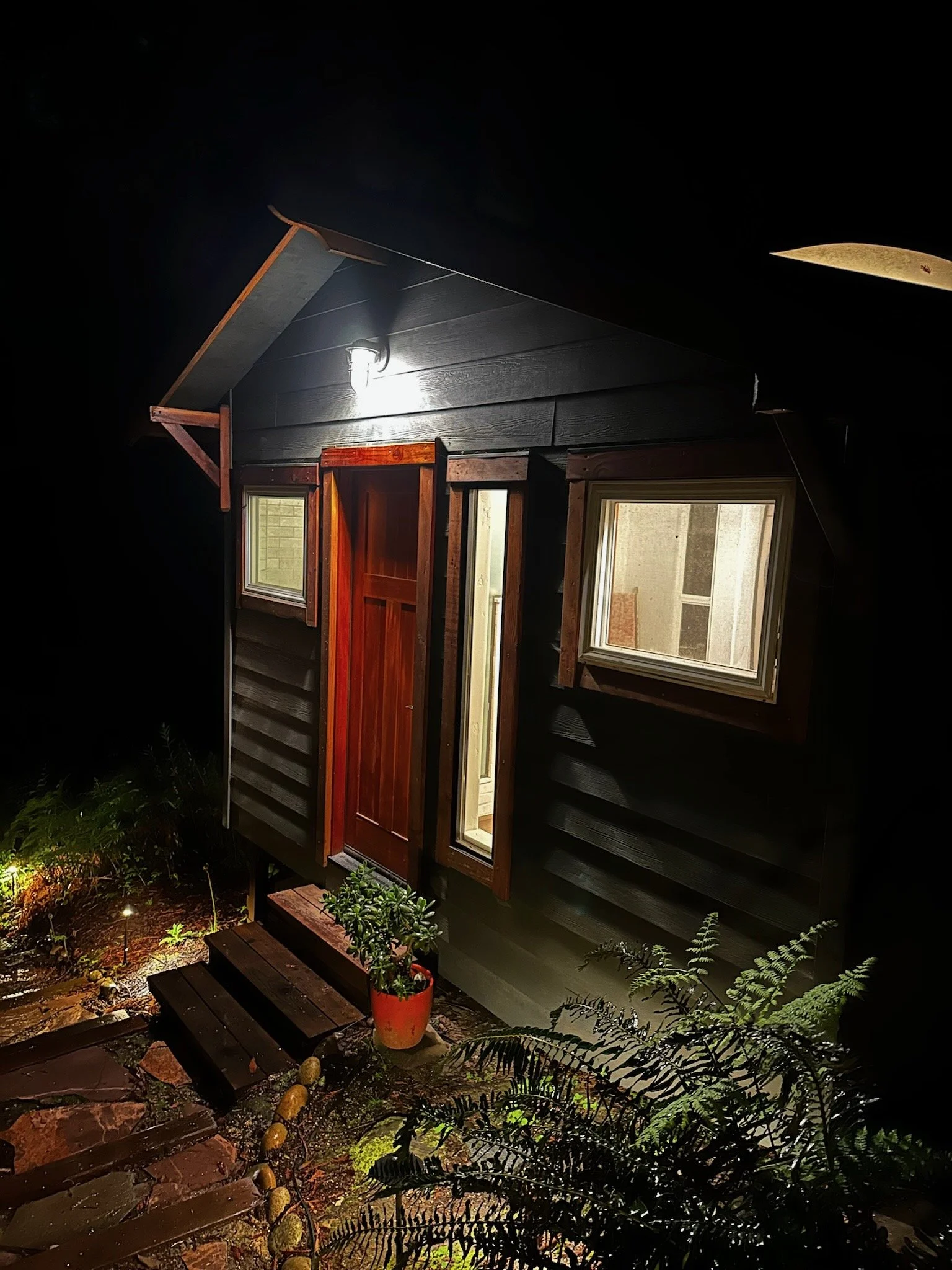 Indoor and outdoor showers, quartz counters, plus jacuzzi tub give lots of options for refreshing between sessions. Take time out to drop in or forest bathe amongst the giant trees. You are welcome to relax here, and your body remembers the way.